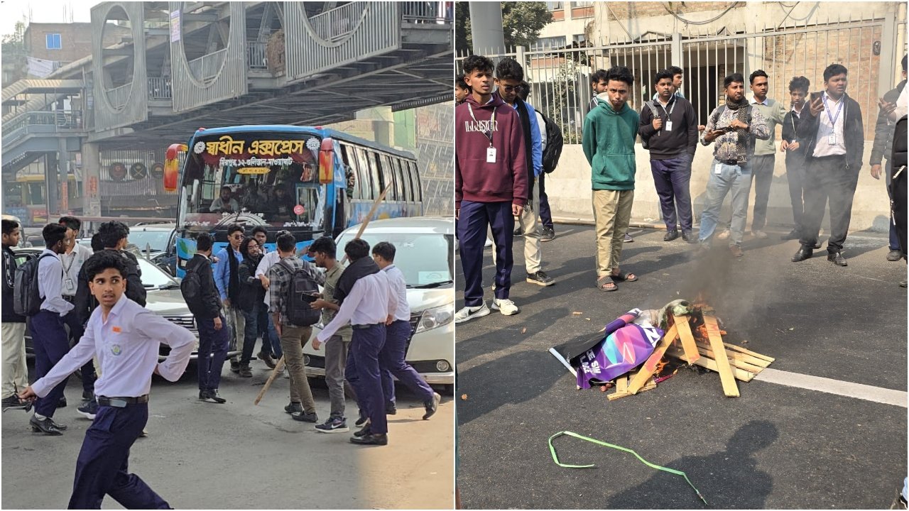 এর প্রভাবে কারওয়ান বাজার, বিজয় সরণি, শাহবাগ ও পান্থপথ এলাকায় ভয়াবহ যানজট ছড়িয়ে পড়েছে। বাসের অপেক্ষায় থাকা শত শত যাত্রীকে অসহায়ের মতো দাঁড়িয়ে থাকতে দেখা গেছে। অনেক অফিসগামী যাত্রী ও সাধারণ মানুষ বিকল্প পথ না পেয়ে পায়ে হেঁটে গন্তব্যে পৌঁছানোর চেষ্টা করছেন।